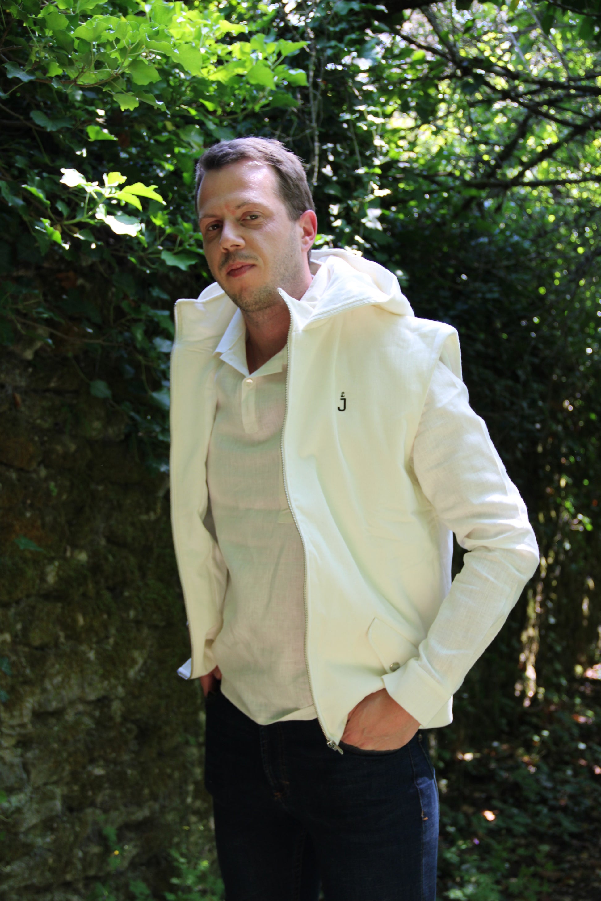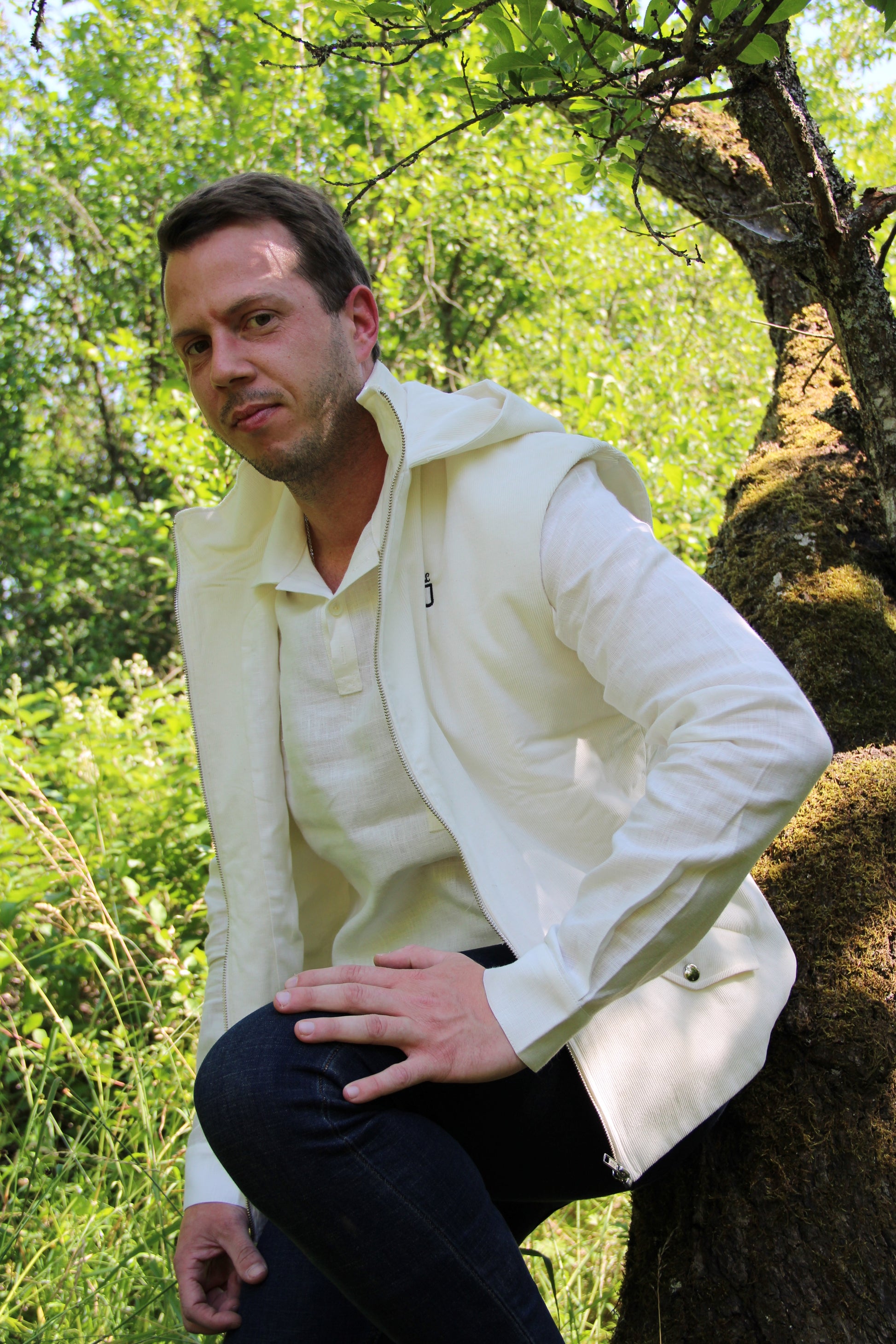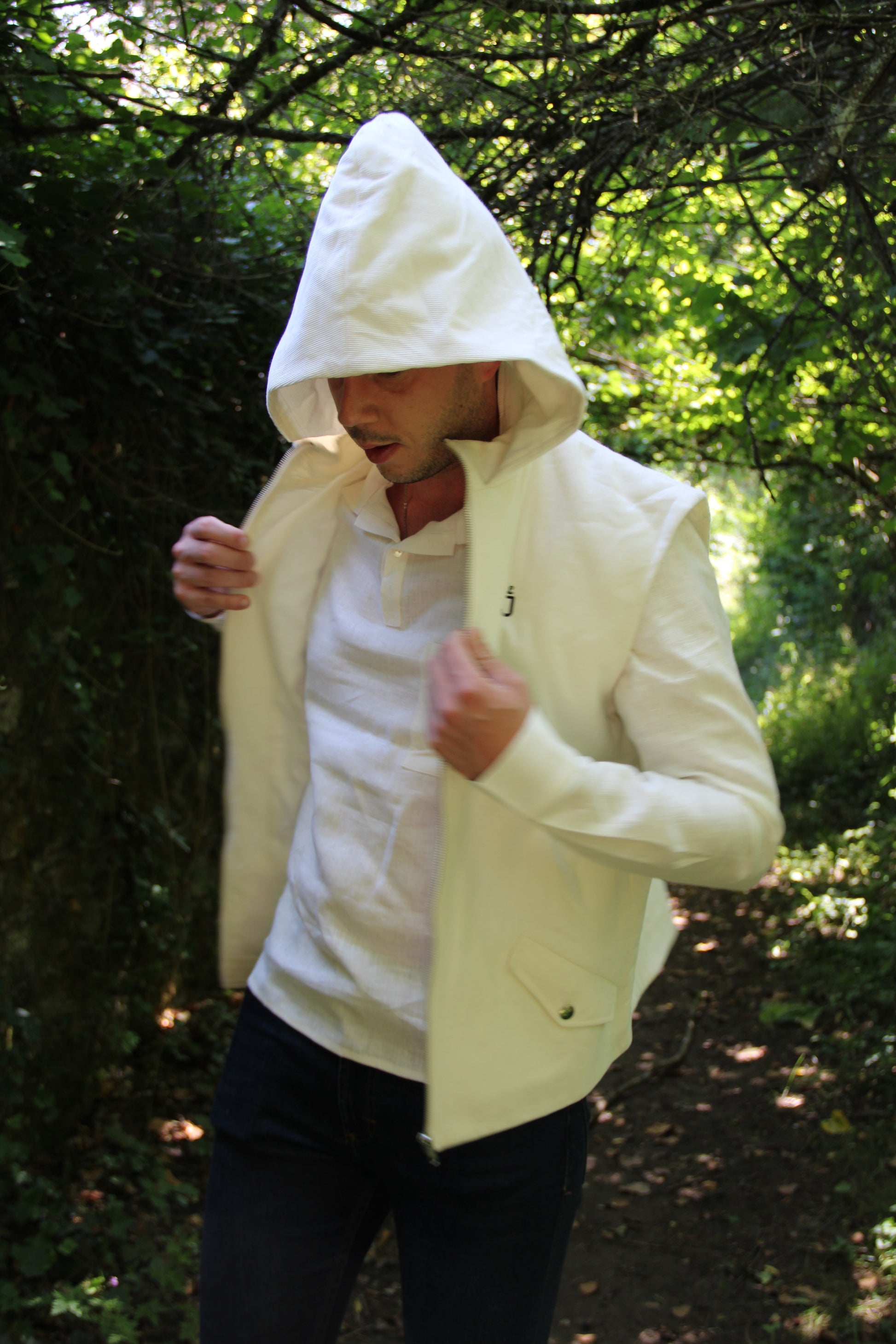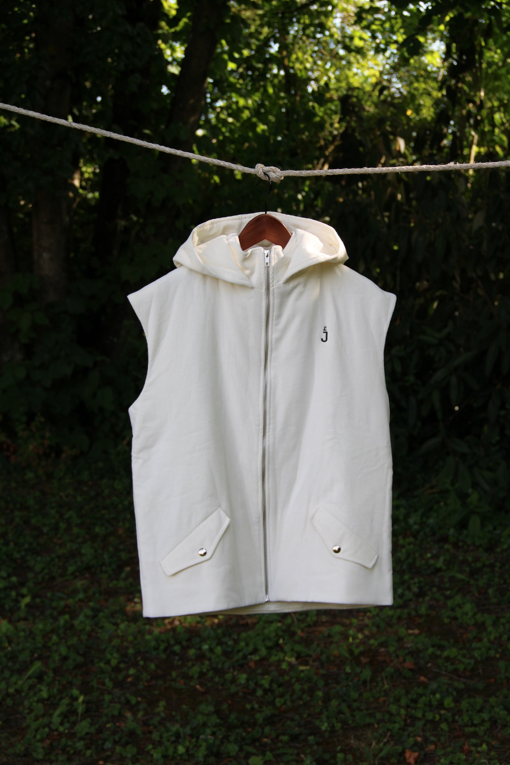 Makar est une veste sans manches à capuche, confectionnée avec du velours côtelé de coton biologique et teint avec soin et respect environnemental, grâce à une teinture végétale de couleur écru naturel, issue d'un savoir-faire ancestral. Cette veste se veut tout aussi élégante que décontractée .